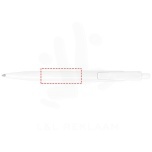 Click action ballpoint pen made of recycled PET coming from post-consumer water and soda bottles (except for the refill and the spring). One bottle of 500 ml is used to produce one ballpoint pen. Includes a European X20 refill with documental ink and a writing length of approximately 2000 metres. Also available with a blue ink refill (107723). Made in Italy.