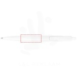Click action ballpoint pen produced with recycled PET coming from post-consumer water and soda bottles (except for the refill and the spring). One bottle of 500 ml is used to produce one ballpoint pen. Includes a European X20 refill with documental ink and a writing length of approximately 2000 metres. Also available with a black ink refill (107722). Made in Italy.