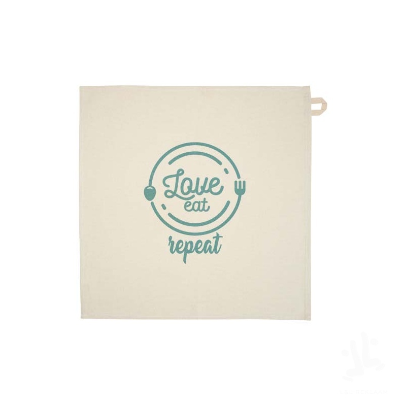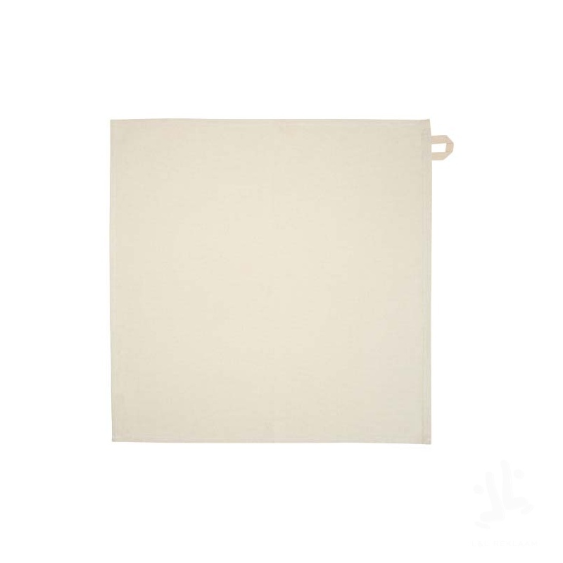 Kitchen towel crafted from 100% GRS certified 200 g/m² recycled cotton, featuring a distinctive contrasted loop. Towel size: 50 x 50 cm.
