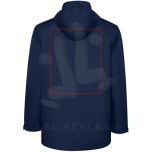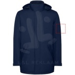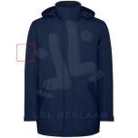 Waterproof padded parka jacket for kids. High collar with folding hood and hook & loop closure. Matching central zipper with flap. Side pockets with zipper and fixed flap. Interior pocket with hook & loop closure. Adjustable cuffs with hook & loop belt loop. Interior access for reinforcements on the back and left chest.