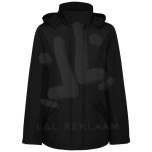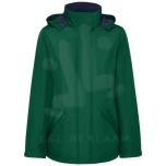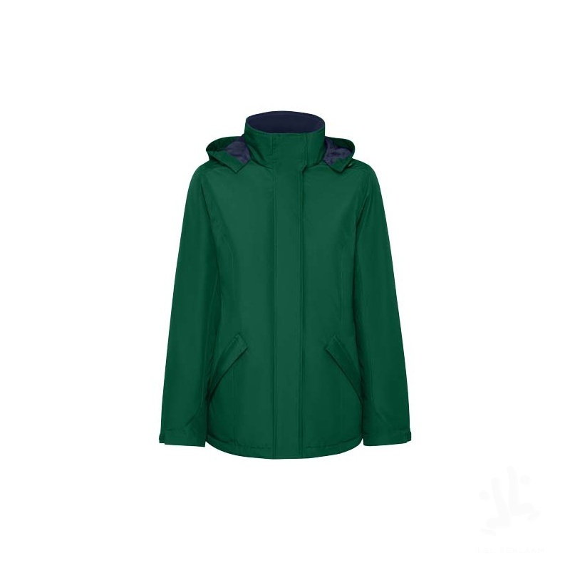 Waterproof padded parka jacket for women. Slim-fit. High collar with folded and removable hood with hook & loop closure. Matching central zipper with flap. Side pockets with zipper and fixed flap. Interior pocket with hook & loop closure. Adjustable cuffs with hook & loop belt loop. Interior access for reinforcements on the back and left chest.