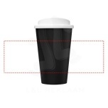 Double-walled tumbler made from recycled plastic, with a twist-on lid. The tumbler is 75% recycled in total, with a recycled mug with black inner layer, and a standard lid. Due to the nature of recycled plastic, there may be small marks or some colour variation. The tumbler has a volume capacity of 350 ml and is fully recyclable. Made in the UK. Packed in a recycled PE plastic bag. BPA-free and dishwasher safe.
