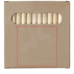 Colouring set with 12 pencils made of poplar wood. Delivered with a manual in a kraft paper box. Pencil size: 87 x 7 mm. Warning! Not suitable for children under three years. Small parts. Choking hazard.