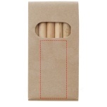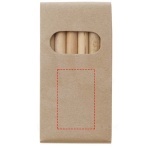 Colouring set with 6 pencils made of poplar wood. Delivered with a manual in a kraft paper box. Pencil size: 87 x 7 mm. Warning! Not suitable for children under three years. Small parts. Choking hazard.