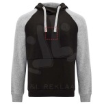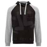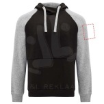 Two-colour unisex hoodie. Hood with crossed neck and metal eyelets. Contrasting inner hood, drawcord and raglan sleeves. Kangaroo pocket. Cuffs and hem in 1x1 elastane rib knit. Removable label.