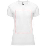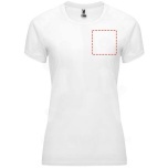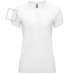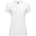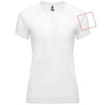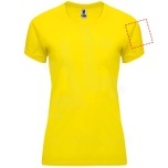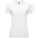 Technical short-sleeve raglan t-shirt for women. Crew neck with matching covered seams. Sleeve panels. Matching overlock in armhole and sleeve panel. CONTROL-DRY fabric. Removable label. Technical fabric. UV protection factor. The model is 173 cm and is wearing size S.