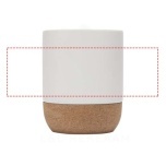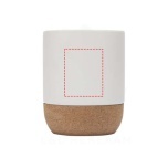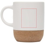 Ceramic mug with cork detail on the bottom. Matt exterior and glossy interior. Hand wash with warm water and mild detergents. Presented in a recycled cardboard gift box. Volume capacity: 300 ml.