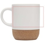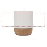 Ceramic mug with cork detail on the bottom, and a special coating on the outside that allows for sublimation printing. Glossy white interior and exterior. Hand wash with warm water and mild detergents. Presented in a recycled cardboard gift box. Volume capacity: 300 ml.