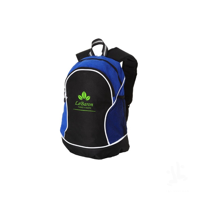 The Boomerang is an eye-catching promotional backpack and is available in several striking colour combinations. With its main zippered compartment, and a front zippered pocket, including a convenient interior organization, the sporty-looking backpack offers plenty of room for carrying large and small items. The side mesh pocket also holds space for small items. It has padded, adjustable shoulder pads and therefore fits every adult. The Boomerang backpack is made of durable 600D polyester, and non-woven polypropylene (80 g/m²).