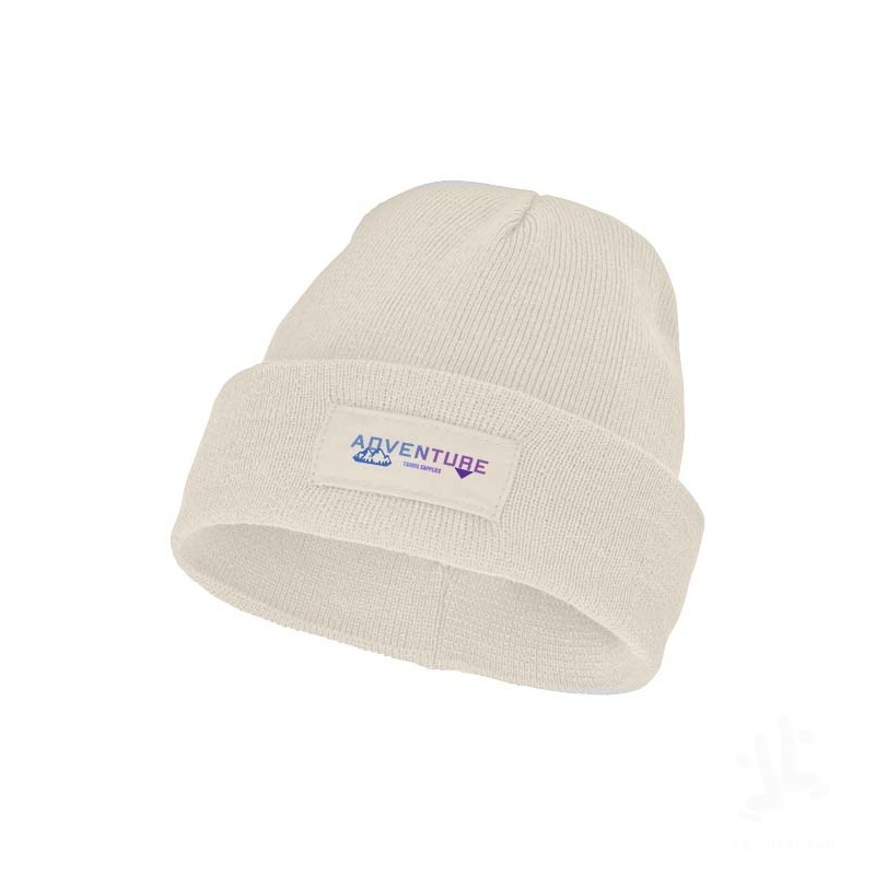 The Boreas beanie with patch does not only keeps you warm and cozy but also offers a canvas for personal branding. Made from 1x1 rib knit of acrylic, the beanie is warm and durable. The contrast fabric patch woven from polyester, offers a great opportunity for presenting your logo or other branding. Embrace comfort, individuality, and practicality with the Boreas beanie.