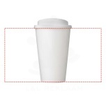 Double-wall insulated tumbler with a twist-on spill-proof lid and full colour wraparound design moulded to the product. Made from a total of 70% recycled material (recycled mug and black inner), and has a standard PP lid. The mug is fully recyclable, and dishwasher and microwave safe. 350 ml volume capacity and BPA free. Packed in a home compostable bag. Made in the UK.