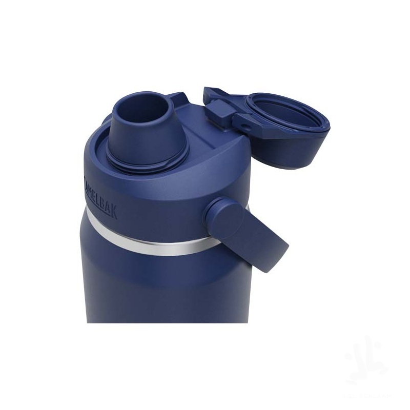 The Camelbak® Thrive Chug VSS (vacuum insulated stainless steel) water bottle offers an easy on-the-go hydration experience. It comes with and integrated bumper to protect against dents and to ensure a secure grip on nearly any surface. A strong and durable full powder coat finish keeps drinks tasting great, while the double-wall vacuum insulation keeps them hot or cold for hours. The new spout cap flips and automatically stays in open position – push it back and it stays in place. The easy close spout will make sure the bottle is 100% leak proof, while the new soft pivoting handle allows for the easy carry of the bottle. Volume capacity: 740 ml.