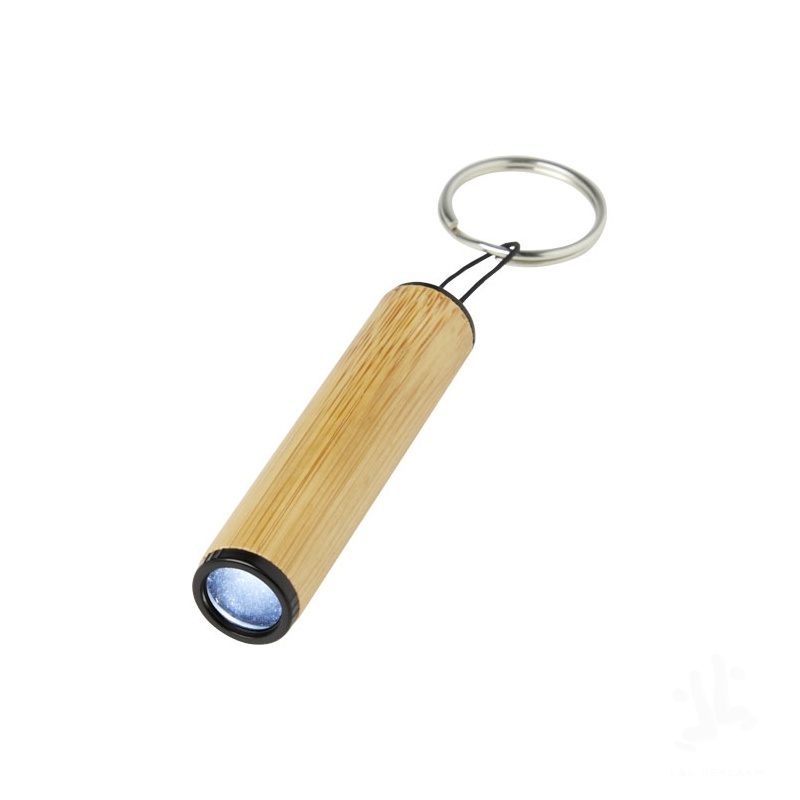 The Cane bamboo key ring with light is a compact and versatile accessory designed to provide you with convenient illumination whenever you need it. Just pull the polyester string to shine your light. The key ring can easily be attached keys, backpack, or any other personal belongings. The body is made of durable ABS material, ensuring long-lasting performance, and the outer case is crafted from bamboo, adding a touch of natural beauty to its design. Delivered with 3 LR41 batteries. Light capacity: 1.5V/30mAh.