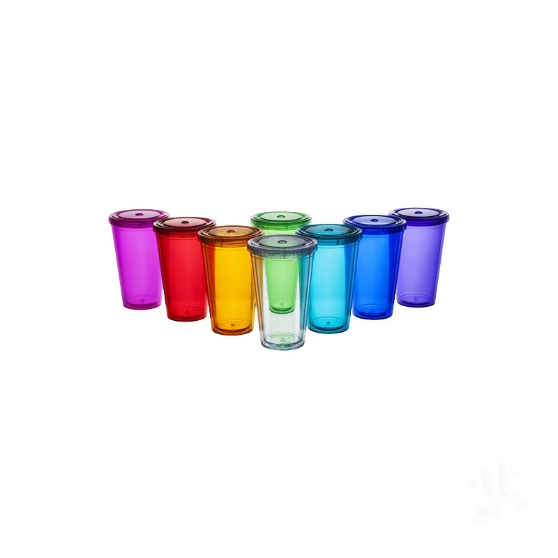 Iconic double wall insulated tumbler with straw. Volume capacity is 450 ml.
