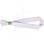 Recycled PET festival bracelet with recycled PET security lock. Print is available to one or both sides. For double-sided printing, you can choose from the standard or fitted option (fitted means that the print lines up on both sides). The one-way security lock prevents the item from being taken off which makes it the perfect security pass for parties and events.