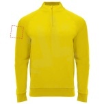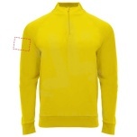 Technical fabric. Raglan sleeves. Inner fleece. Collar with half zipper and matching reinforced covered seams. 1x1 rib in back collar, cuffs and hem. Removable label. Sweatshirt to match with Neapolis trousers.