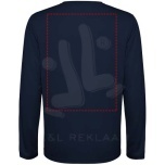 Kids long-sleeve unisex technical t-shirt. Collar with matching seams. Back hem slightly longer than the front. Side seams shifted forward.