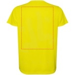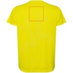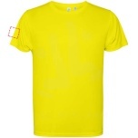 Short-sleeved technical t-shirt for kids. Collar with matching seams. Back hem slightly longer than the front. Side seams shifted forward.