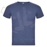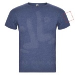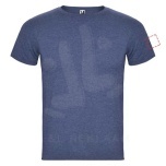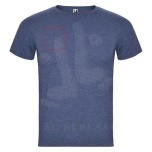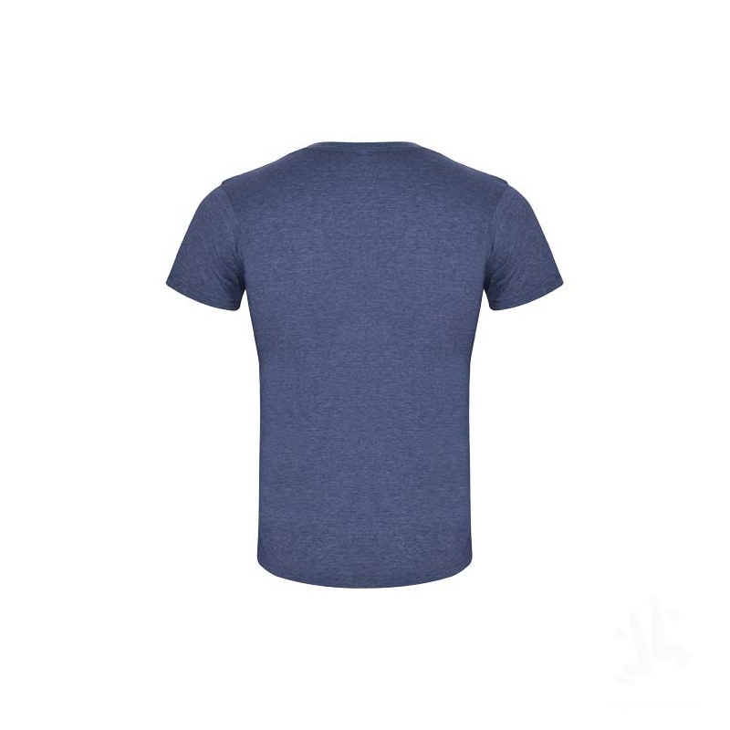 Short-sleeve t-shirt with heathered effect. 1x1 ribbed crew neck with interior reinforced covered seams. Tubular fabric. Removable label.