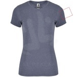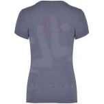 Short-sleeve t-shirt with heathered effect. Fitted design. 1x1 ribbed crew neck with interior reinforced covered seams. Tubular fabric. Removable label.