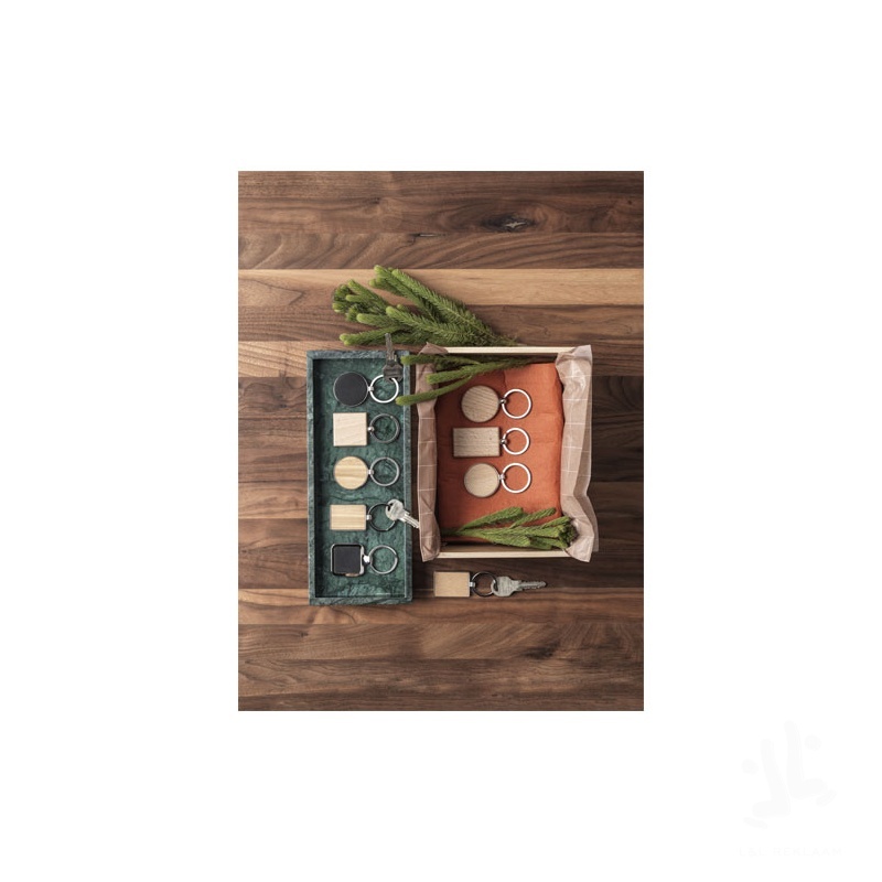 Rectangular keychain made of beech wood, supplied into a brown recycled Kraft paper envelope. The size of the keychain is 5.5 x 3.5 cm. Made for laser engraving.