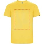 Technical short-sleeve t-shirt in recycled CONTROL-DRY polyester. Crew neck with matching covered seams. ECO logo label on sleeve. Packing in recycled material. Removable ECO label. Packing in recycled material. Technical fabric. The model is 115 cm and is wearing size 5/6.