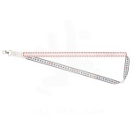 1 metre recycled PET lanyard with full colour design sublimation. This lanyard includes full colour printing on 1 side, while the back side has measuring tape print. The lanyard comes with a metal hook, and can hold a name badge, ID card or keys.