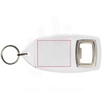 Clear R1 keychain with bottle opener and metal split keyring. The metal looped ring offers a flat profile which is ideal for mailings. Print insert dimensions: 4,0 cm x 3,2 cm.