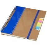 An A5 size notebook with a matching colour elastic closure and ruler with centimetres on the front side and inches on the back. Comes with 100 sticky notes, 25 per colour. Includes 70 sheets of 70g/m2 lined paper.