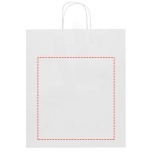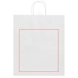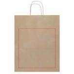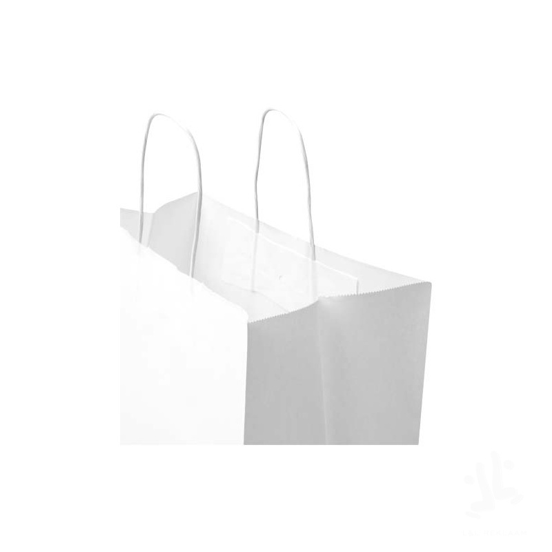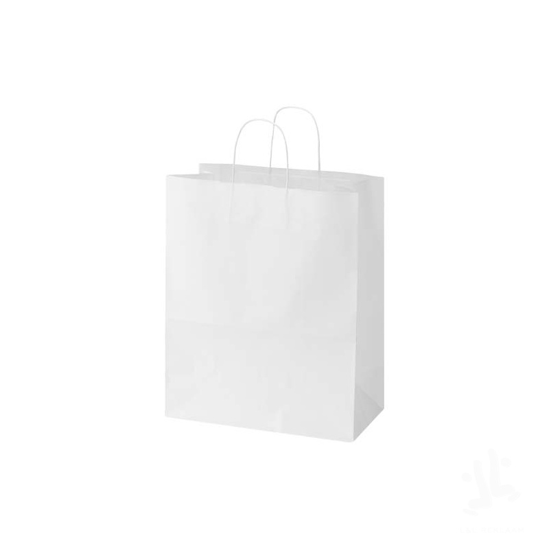 Kraft paper bag with twisted handles made from responsibly sourced paper (white 90 g/m2, brown 80 g/m2). This bag is a durable packaging solution with ample space for a variety of items. The natural and rustic appearance of the kraft paper adds an elegant touch to any occasion. Size: 32 x 17 x 39 cm. Made in Europe.