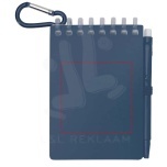 The Lig Mini notebook and pen set is a compact and practical companion for on-the-go note-taking. The spiral-bound notebook has a soft recycled plastic cover and 70 blank sheets of 120 g/m² water-resistant stone paper, making it ideal for outdoor use. With rounded corners and a built-in pen loop, it embraces the mini-size trend while remaining functional. The matching ballpoint pen is made from recycled ABS plastic, writes in black ink, and offers a writing length of 250 metres. A colour-coordinated metal ring allows the set to be easily attached to a backpack, purse, or keychain, making it perfect for durable and portable note-taking. Notebook size: 11 × 7.5 cm.