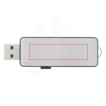 USB with striking light-up logo effect (white light) that illuminates an engraved logo when connected to a computer.