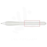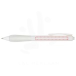 Recycled plastic ballpoint pen with a rubberized barrel, and grip made of TPR. Ink colour: Blue. Writing length: 1000 metres. Nib size: 1.0 mm.