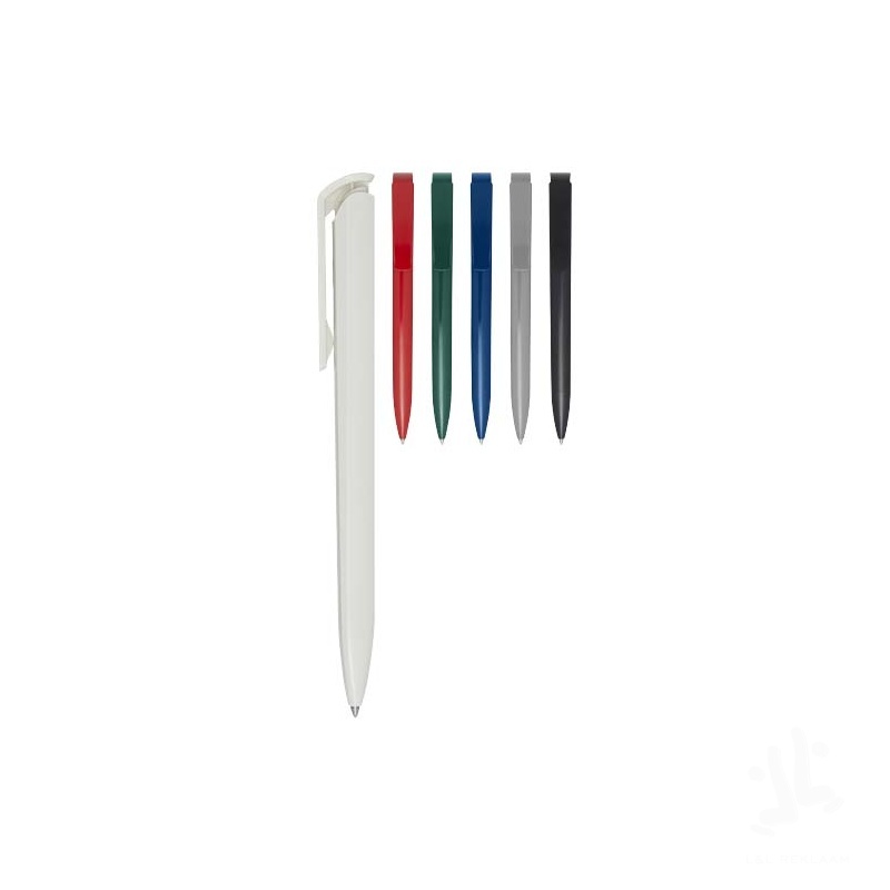 Ballpoint pen with the barrel, clip, and tip made from recycled plastic. Ink colour: Blue. Writing length: 3000 metres. Nib size: 1.00 mm. Made in Germany.