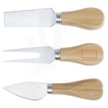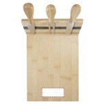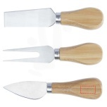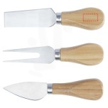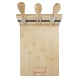 Cheese set made of bamboo with a cheese board (30 x 20.2 x 7.6 cm), 2 cheese knives (12.5 x 2.5 cm and 12.5 x 2.7 cm), and a cheese fork (13.5 x 2.4 cm). On the side of the cheese board there is a magnetic strip to attach the cheese tools, allowing you to serve cheese in style. The bamboo used is sourced and produced following sustainable standards.
