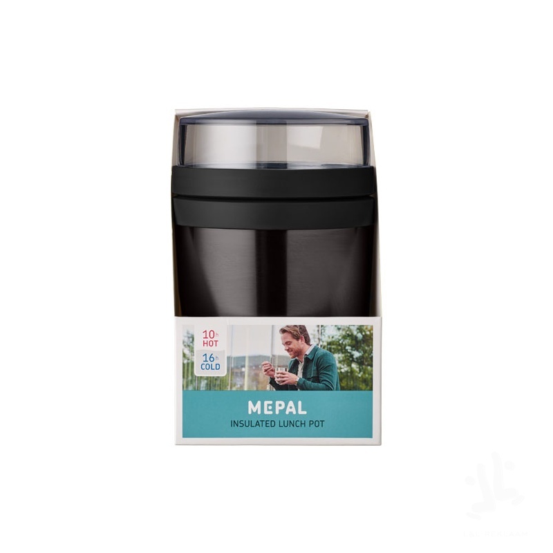 Insulated lunch pot featuring two different compartments to keep the different ingredients separated. Both containers have a separate lid so that the ingredients doesn't mix. Keeps food warm for 10 hours or cold for 16 hours. To ensure that the food stays hot or cold for as long as possible it is recommend to rinse the lunch pot with hot or ice-cold water before filling. The content of the top transparent container is 200 ml, which means that it can hold about 75 grams of solid food. The capacity of the bottom container is 500 ml. Made of durable material, and the outside of the pot stays cool and dry. Washing by hand is recommended. The plastic parts of the cap can be put in the dishwasher. Leakproof. BPA free. 2 years Mepal warranty.