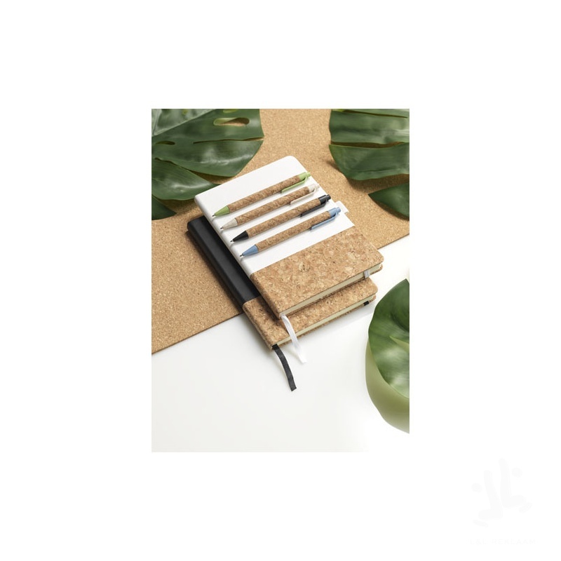 Eco friendly ballpoint pen with click action mechanism, with a barrel made of cork, and wheat straw trims that comes in a variety of colours. Wheat straw is left over stalk after wheat grains are harvested. This reduces the amount of plastic used, providing an Eco friendly alternative. The colour of the cork material may vary.