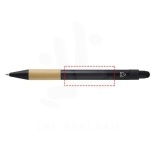 The Minka gift set includes a ballpoint pen made from RCS certified recycled aluminium with a stylish bamboo grip and stylus tip, an aluminium keychain (5.5 × 1.8 × 1 cm) with bamboo details and an integrated phone holder, and an RFID card holder (9.7 × 6.2 × 1 cm) with an aluminium alloy body and bamboo details, providing protection for up to 10 cards. The pen contains black ink with a writing length of 1000 metres. A thoughtful and practical gift that combines functionality with modern design. Supplied in a premium black gift box (16 × 16 × 2.7 cm) with a plain front, ideal for adding a logo.