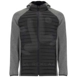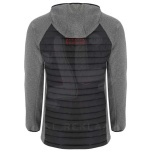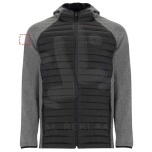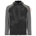 Unisex jacket in two-fabric combination: Fixed adjusted hood. Raglan sleeves. Sleeves, side panels and hood in softshell fabric. Quilted feather touch fabric in front and back. Inverted zip with matching chin protector and puller. Two front pockets with zippers. Matching elastic trim in collar, cuffs and hem. Removable label. Wind-proof model. The male model is 184 cm and is wearing size L, and the female model is 179 cm and is wearing size S.