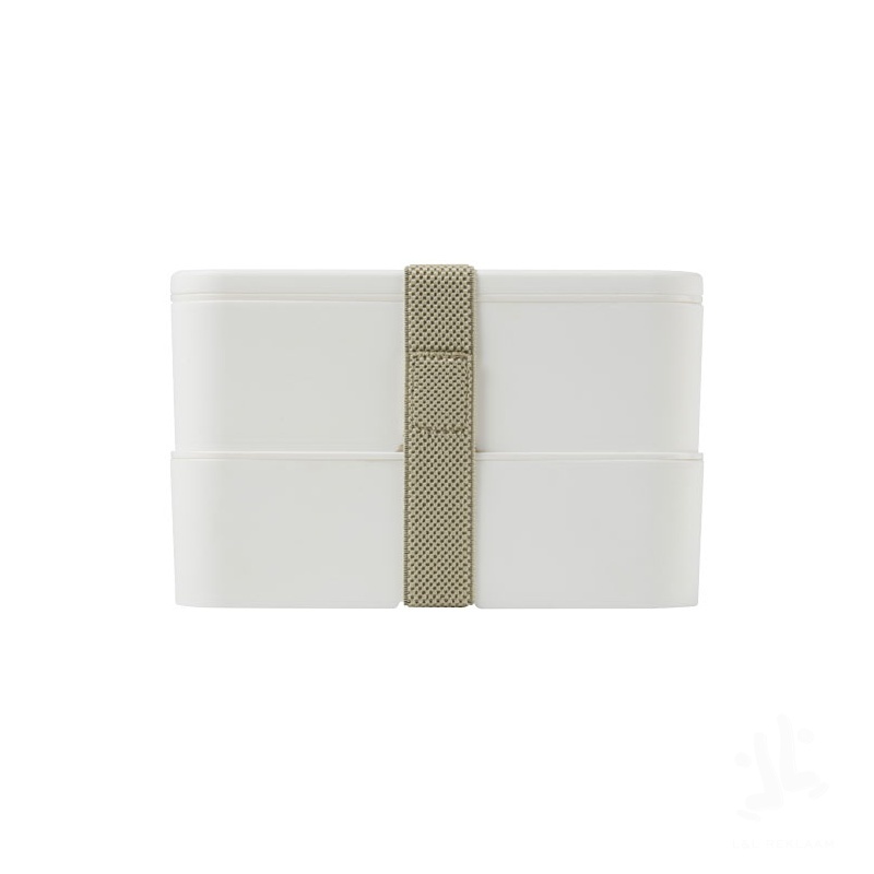 Go large with this MIYO double layer lunch box! With two 700 ml capacity bases, there’s plenty of room for sandwiches, fruit, salad and much more, and it’s all held in place with a band made from recycled PET. Other colour combinations plus accessories are available, such as a spork or inner compartment, please contact us for details. Microwave safe, dishwasher safe, BPA-free and fully recyclable. Made in the UK and packed in a recycled PE plastic bag. Fully customise your MIYO by adding individual recipient names to the lid – please contact us for more details. Volume capacity: 700+700 ml.