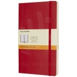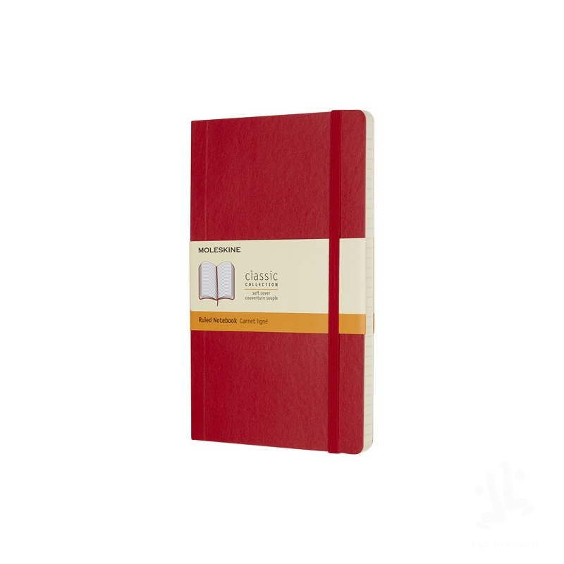 The Moleskine Classic large (13x21cm) soft cover notebook is available in a wide range of stylish vibrant colours. The notebook features a cardboard soft cover with rounded corners, acid free paper, a bookmark and elastic closure. On the first page in case of loss notice with space to jot down a reward for the finder. Attached to the back cover an expandable inner pocket that contains the Moleskine history. The pocket can be used for loose papers and notes. Contains 192 ivory-coloured ruled pages.