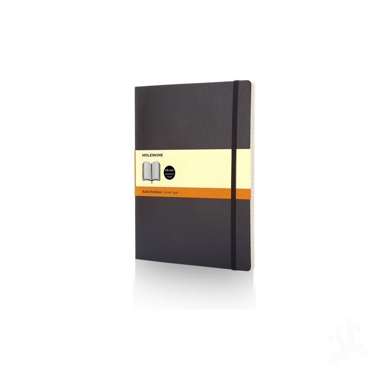 The Moleskine Classic XL (19x25cm) soft cover notebook is available in a wide range of stylish vibrant colours. The notebook features a cardboard soft cover with rounded corners, acid free paper, a bookmark and elastic closure. On the first page 'in case of loss notice' with space to jot down a reward for the finder. Attached to the back cover an expandable inner pocket that contains the Moleskine history. The pocket can be used for loose papers and notes. Contains 192 ivory-coloured ruled pages.
