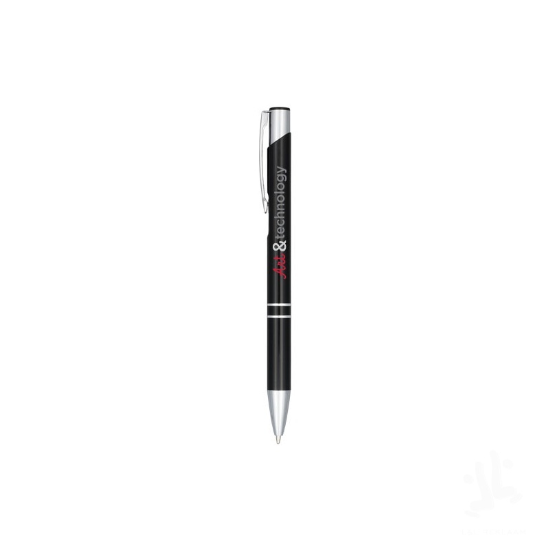 Ballpoint pen with click action mechanism, aluminium barrel, ABS parts, and a steel clip. The pen is available in a wide variety of colours, and has an anodized finish which gives it a stunning shine. The extensive and popular Moneta range is available in many different styles and finishes.