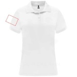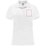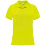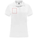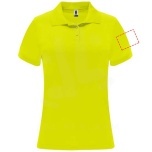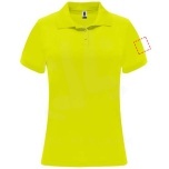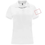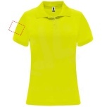 Short-sleeve technical polo shirt for women. Knit collar with three-button placket. Fitted cut. Breathable, easy wash and dry fabric. Removable label. Technical fabric. Breathable fabric. The model is 173 cm and is wearing size S.