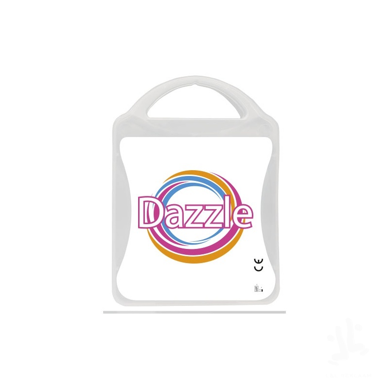 Ideal first aid kit to prevent or treat bites and stings from summer insects. Contents: 12 wash proof plasters, 4 skin cleansing swabs, 2 dry swabs, 2 burn wound lint pads, 1 bee patch, 1 Aloe Vera cream. All of the first aid and care products within the kit meet all applicable EU regulations. Price includes full colour print.