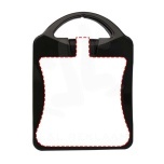 This extensive first aid kit is a handy thing to have in your house to be prepared for injuries and emergencies. Content: 1 first aid guide, 1 blister plasters, 12 wash proof plasters, 1 metal tweezer, 1 scissor, 1 triangular bandage, 1 pair of disposable gloves, 2 wound compress, 1 sterile wound dressing, 2 dry swabs, 4 skin cleansing swabs, 1 Mouth-to-Mouth shield. All of the first aid and care products within the kit meet all applicable EU regulations. Price includes full colour print.
