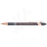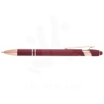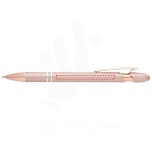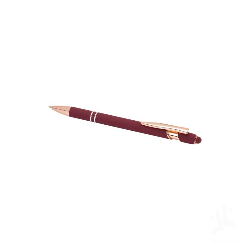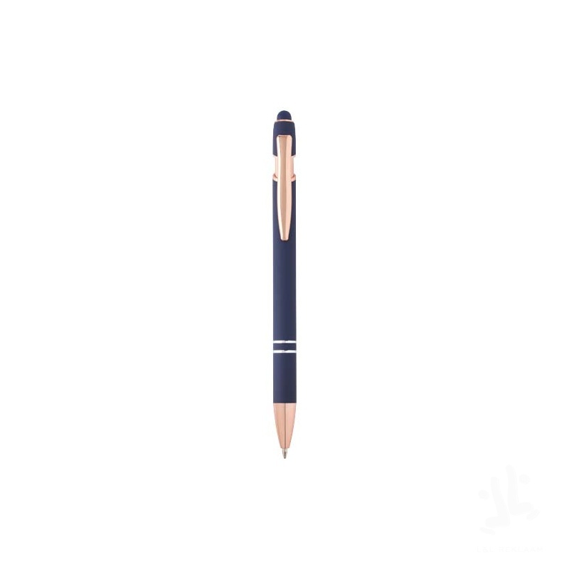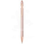 The Nanna ballpoint pen with rose gold finish has a barrel made of recycled aluminium with a touch stylus made of silicone. Recycled aluminium reduces the amount of waste in landfills and helps to conserve natural resources aiming to reduce greenhouse emissions. Ink colour: Blue. Writing length: 800 metres. Nib size: 1.0 mm.