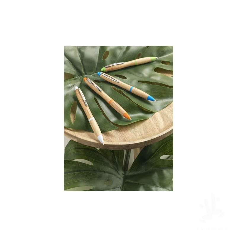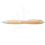 Ballpoint pen with click action mechanism, with a barrel made of bamboo, accented by a chrome clip and ABS plastic trims. Bamboo material colour may vary.