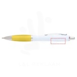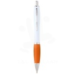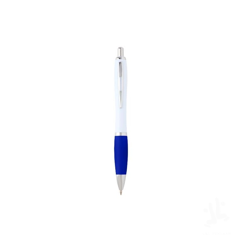 The Nash ballpoint with a stylish curvy design and a soft grip is made of recycled plastic that is hard and solid and thus offers a long life span. Ink colour: Blue. Writing length: 1000 metres. Nib size: 1.00 mm.