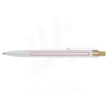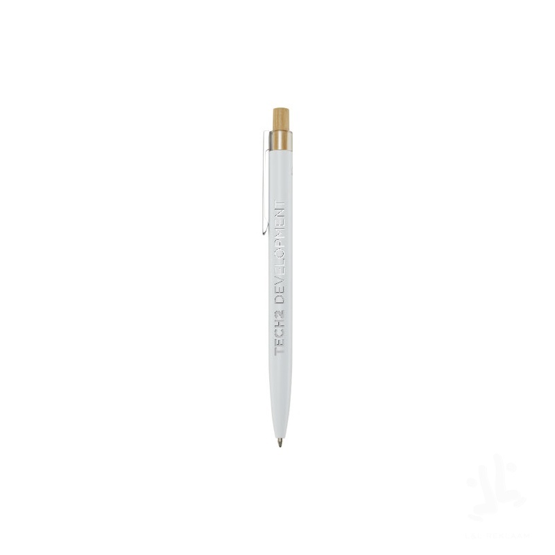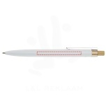 The Nooshin ballpoint pen is made from recycled aluminium, which requires less energy than producing aluminium from raw materials. It also reduces the amount of waste in landfills and helps to conserve natural resources aiming to reduce greenhouse emissions. The push button is made of bamboo. Ink colour: Black. Writing length: 800 metres. Nib size: 1.00 mm.